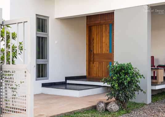 Roshan Villa is located in a growing suburban residential community at Puthencruz, situated a few kilometers from the city of Kochi. Villa sits on a 5.2 cent rectangular corner plot, with south and west facing private roads creating two frontages and residential development on other two sides. Entrance to the site is kept through west , considering provision of back to back car parking and sloping profile of southern plot boundary.
